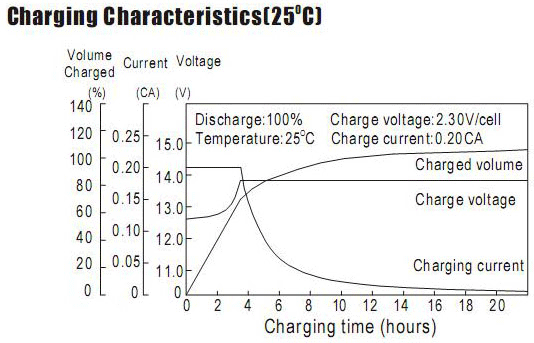 Please charge the battery for 18 hours at current 20A with voltage limitation 14.4V every three months during stock