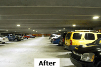 High pressure sodium left versus LED lighting right. LED lighting is closer to true daylight because temperature can be more precisely controlled. True to daylight translates to the perception of greater safety in parking garages. On roadways it means less visual fatigue. In architectural and accent lighting LED's allow improved lighting rendition. LED's start instantaneously and do not flicker or hum. They produce almost no heat and maintenance is reduced because of fewer replacements, and of course the main advantage: they require less energy.