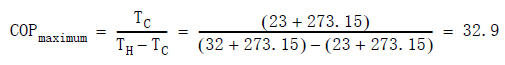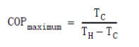 The maximum theoretical COP for an air conditioning system is expressed by Carnot’s theorem, reduced to the following equation: