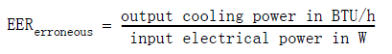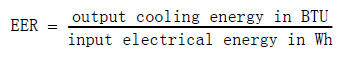 The EER is the ratio of output cooling energy (in BTU) to electrical input energy (in Watt-hour).