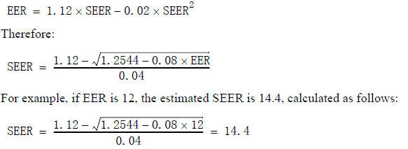 down, the efficiency goes up, so therefore the SEER is greater than the EER (typically by about 15% to 35%). One formula, to convert between the two was