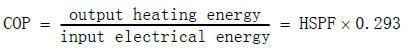 For example, Assume a system has an HSPF of 8. Then from equation 16, the COP is 2.3. This means that 2.3 times the amount of heat is put into the space