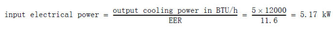 As an example, consider an air conditioning unit that is five tons and has an EER of 11.6. If we want to find out how much power is used we rewrite equation
