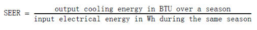 The US DoE defined the formula to be used to calculate SEER values for residential air conditioning systems of less than 65,000 BTU/h (19 kW). The