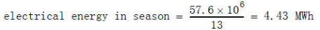Again, assume that on average throughout the season, the unit runs at two thirds of its capacity. The cooling energy is: