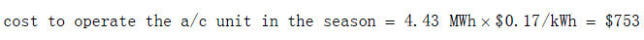 If the cost of electricity is 17 ¢ per kWh, the cost to run this air conditioning unit during the season is: