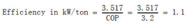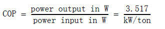 For example, if a chiller has a rating of 1.8 kW/ton, then using equation 17, the COP is 1.95. Therefore, for every 1 kW of power consumed by the chiller, it