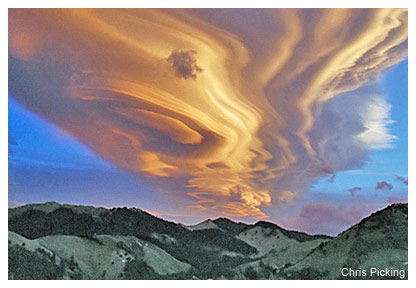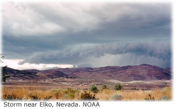 | | The Water Cycle: Water Storage in the Atmosphere The atmosphere is full of water Credit: Chris Picking The water cycle is all about storing water and moving water on, in, and above the Earth. Although the atmosphere may not be a great storehouse of water, it is the superhighway used to move water around the globe. Evaporation and transpiration change liquid water into vapor, which ascends into the atmosphere due to rising air currents. Cooler temperatures aloft allow the vapor to condense into clouds and strong winds move the clouds around the world until the water falls as precipitation to replenish the earthbound parts of the water cycle. About 90 percent of water in the atmosphere is produced by evaporation from water bodies, while the other 10 percent comes from transpiration from plants. There is always water in the atmosphere. Clouds are, of course, the most visible manifestation of atmospheric water, but even clear air contains water—water in particles that are too small to be seen. One estimate of the volume of water in the atmosphere at any one time is about 3,100 cubic miles (mi3) or 12,900 cubic kilometers (km3). That may sound like a lot, but it is only about 0.001 percent of the total Earth's water volume of about 332,500,000 mi3 (1,385,000,000 km3), as shown in the table below. If all of the water in the atmosphere rained down at once, it would only cover the globe to a depth of 2.5 centimeters, about 1 inch. The little cloud that could—but why? (Why does this cloud exist?) How much does a cloud weigh? Do you think clouds have any weight? How can they, if they are floating in the air like a balloon filled with helium? If you tie a helium balloon to a kitchen scale it won't register any weight, so why should a cloud? To answer this question, let me ask if you think air has any weight—that is really the important question. If you know what air pressure and a barometer are, then you know that air does have weight. At sea level, the weight (pressure) of air is about 14 ½ pounds per square inch (1 kilogram per square centimeter). Since air has weight it must also have density, which is the weight for a chosen volume, such as a cubic inch or cubic meter. If clouds are made up of particles, then they must have weight and density. The key to why clouds float is that the density of the same volume of cloud material is less than the density of the same amount of dry air. Just as oil floats on water because it is less dense, clouds float on air because the moist air in clouds is less dense than dry air. We still need to answer the question of how much a cloud weighs. To confuse things more, the weight depends on how you define it: - The weight of the water droplets in the cloud