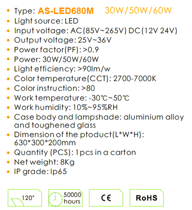 - High-efficiency light, Light weight, Small power consumption, Large power factor.
