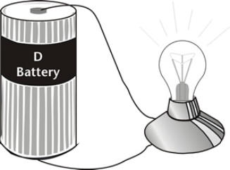 the lightbulb and back to the battery.