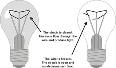 electrons cannot flow. When we flip on a light switch, we close a circuit. The electricity flows from the electric wire through the light and back into the