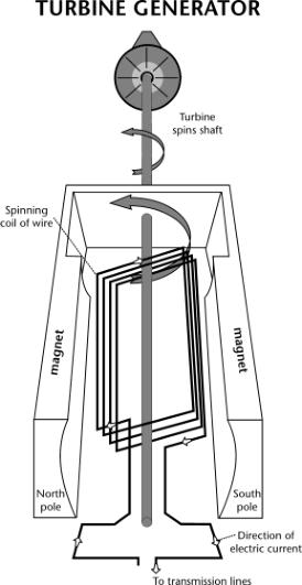 Most of the electricity in the United States is produced in steam turbines. A turbine converts the kinetic