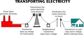 lower voltage electricity. From the substation, distribution lines carry the electricity to homes, offices and factories, which require low voltage